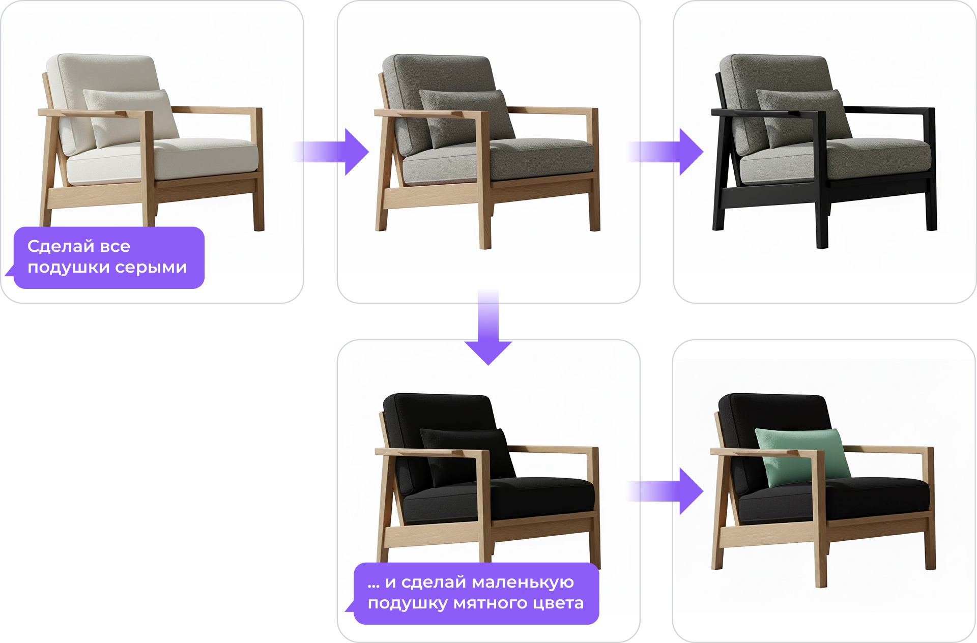 Позвольте клиенту примерить ваш объект в своей квартире. Или внести правки — например, поменять цвет. Или создать кадр для соцсетей с вашим товаром.
